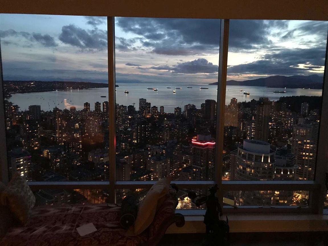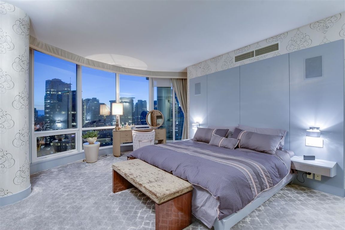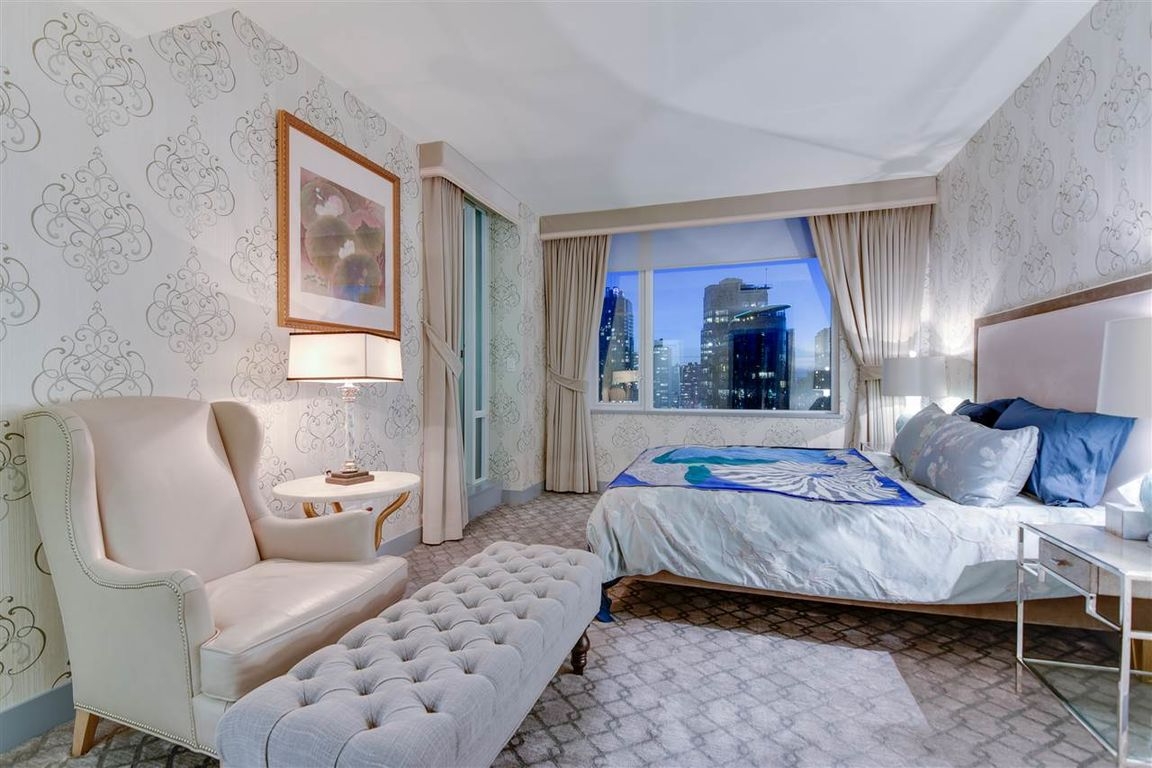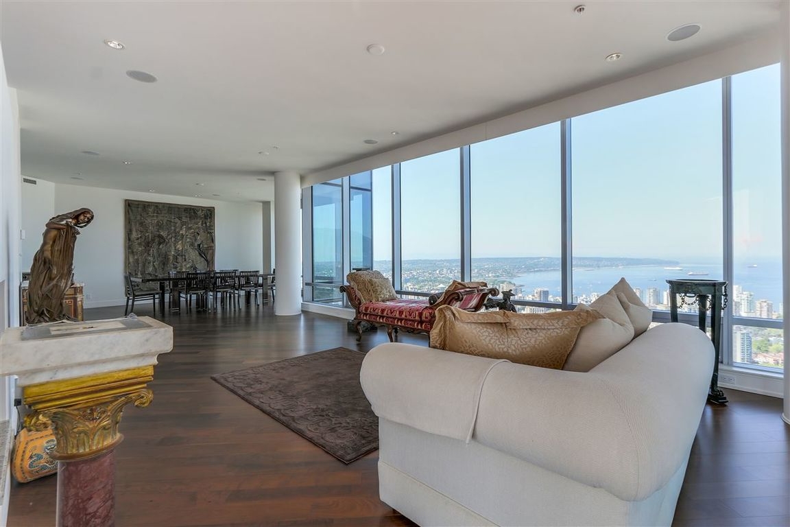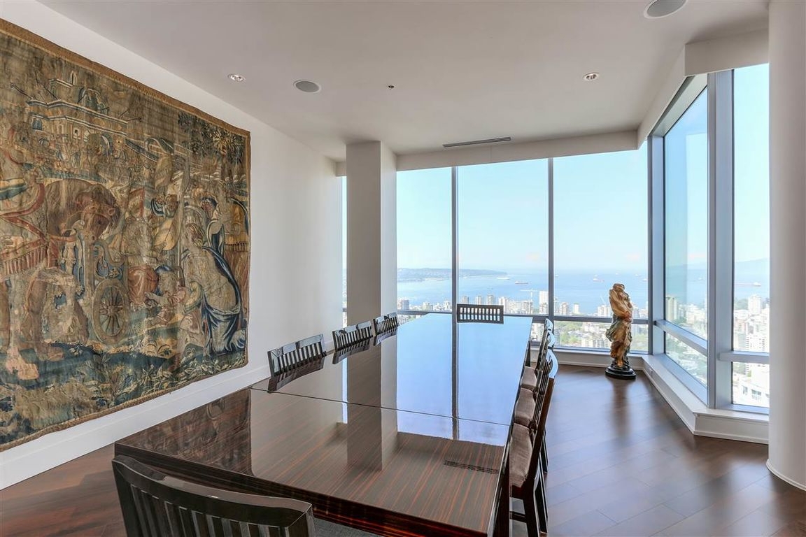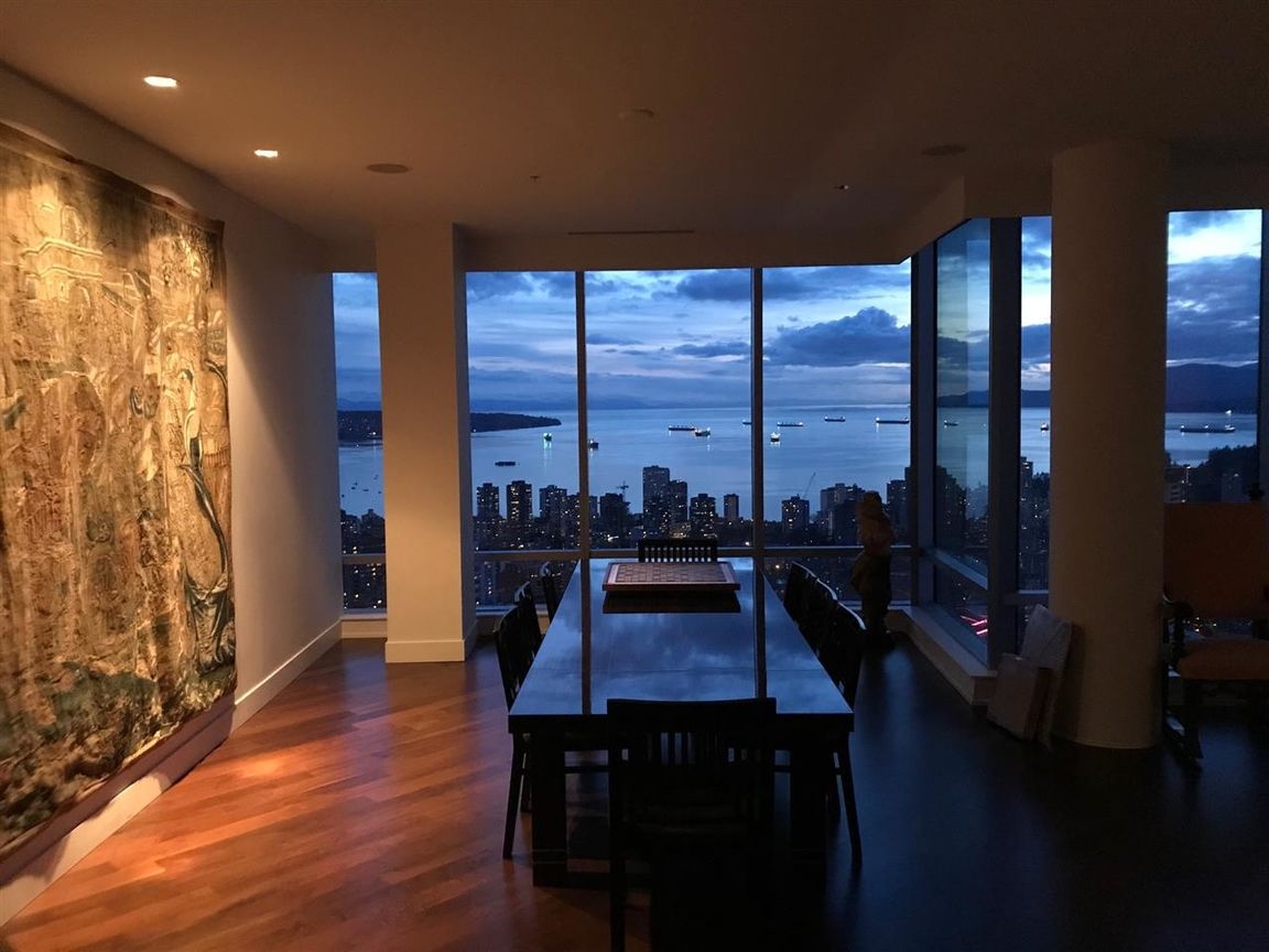 This gorgeous 2681 square foot, 2 bedroom, 2.5 bathroom condo is sure to take your breath away! Located on the 49th floor of the Shangri-La Private Estates, this corner home provides unobstructed views of English Bay, Stanley Park and the North Shore Mountains, which can be enjoyed from the spacious terrace. Enjoy the convenience of 5-star hotel amenities including a spa and resteraunt.