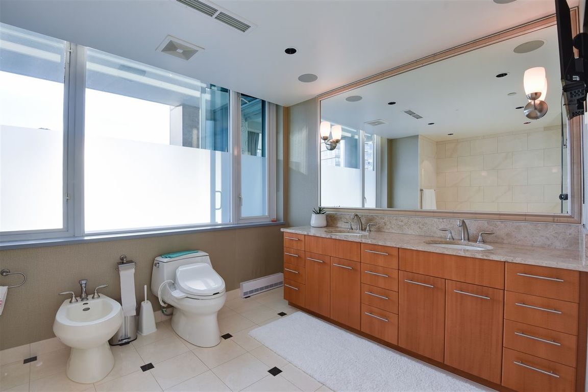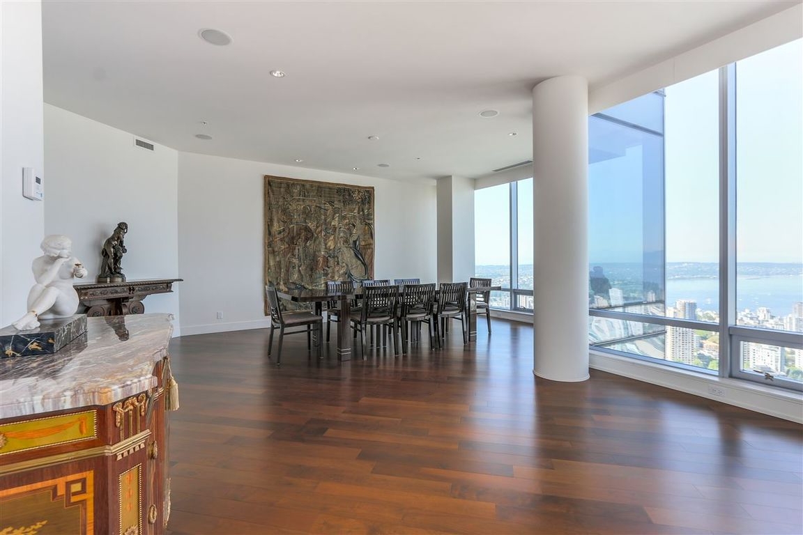 This stunning 3647 square foot condo will knock your socks off! Boasting 3 bedrooms and 3.5 bathrooms, this Coal Harbour pad has breathtaking 270 degree ocean views, so you can enjoy unobstructed vistas to the North, East and West on not one, but two balconies. Cook yourself a fancy dinner in the impressive chef’s kitchen and finish your day relaxing in the grand ensuite, featuring a double steam shower and jetted tub. With secure parking, lots of storage and a full sized laundry room, this spectacular condo has everything you could desire, with stunning views to boot!