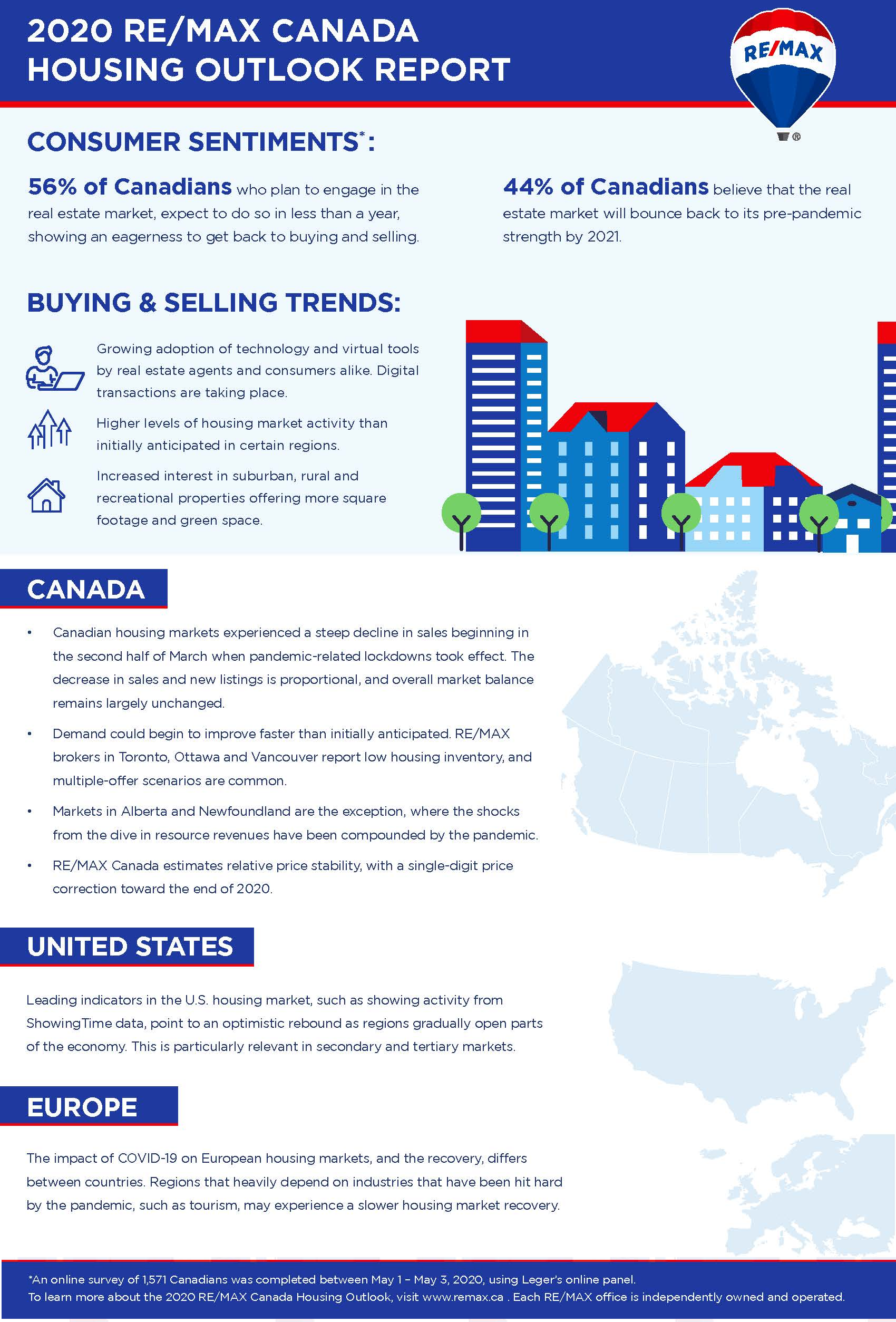 RE/MAX of Ontario-Atlantic Canada and RE/MAX Western Canada estimate that the Canadian housing market is likely to gradually begin its return to sustainable, healthy levels toward the end of 2020. As cities slowly begin the reopening process in the coming weeks, there is likely to be a transition from the uncertainty around the home-buying journey that was seen early on in the COVID-19 pandemic, to an increased comfort level among consumers and real estate agents when it comes to adopting new buying and selling processes.