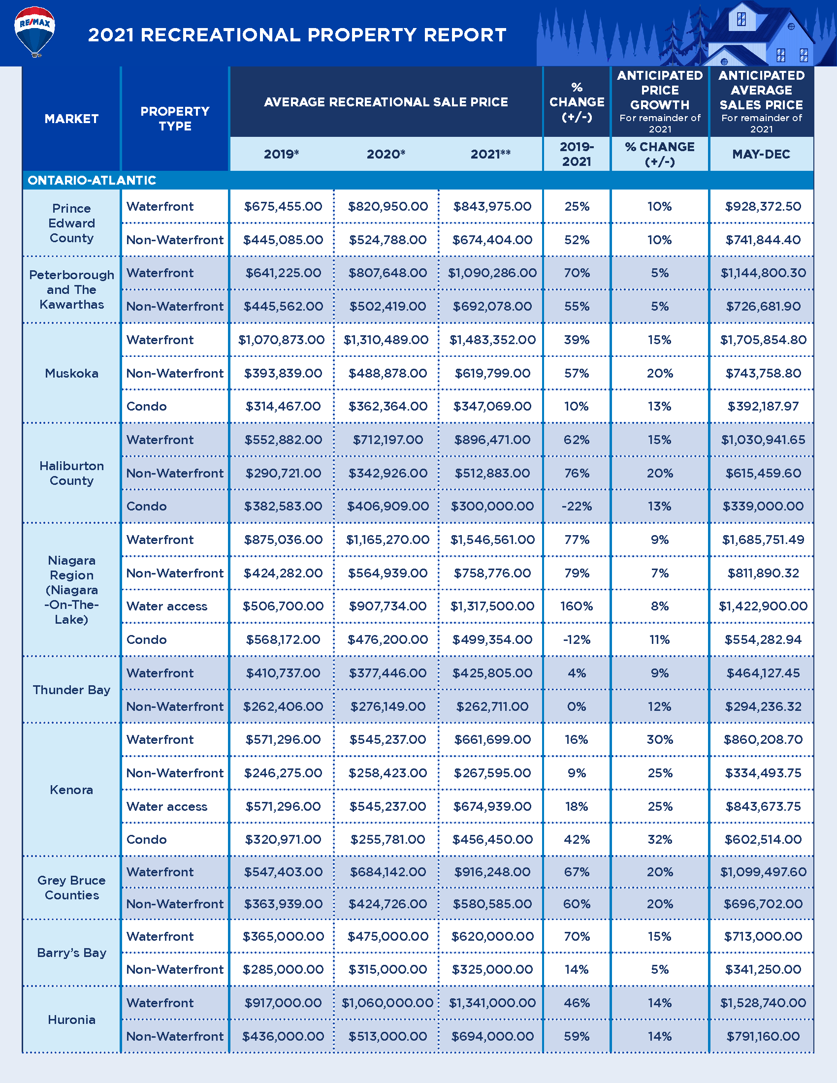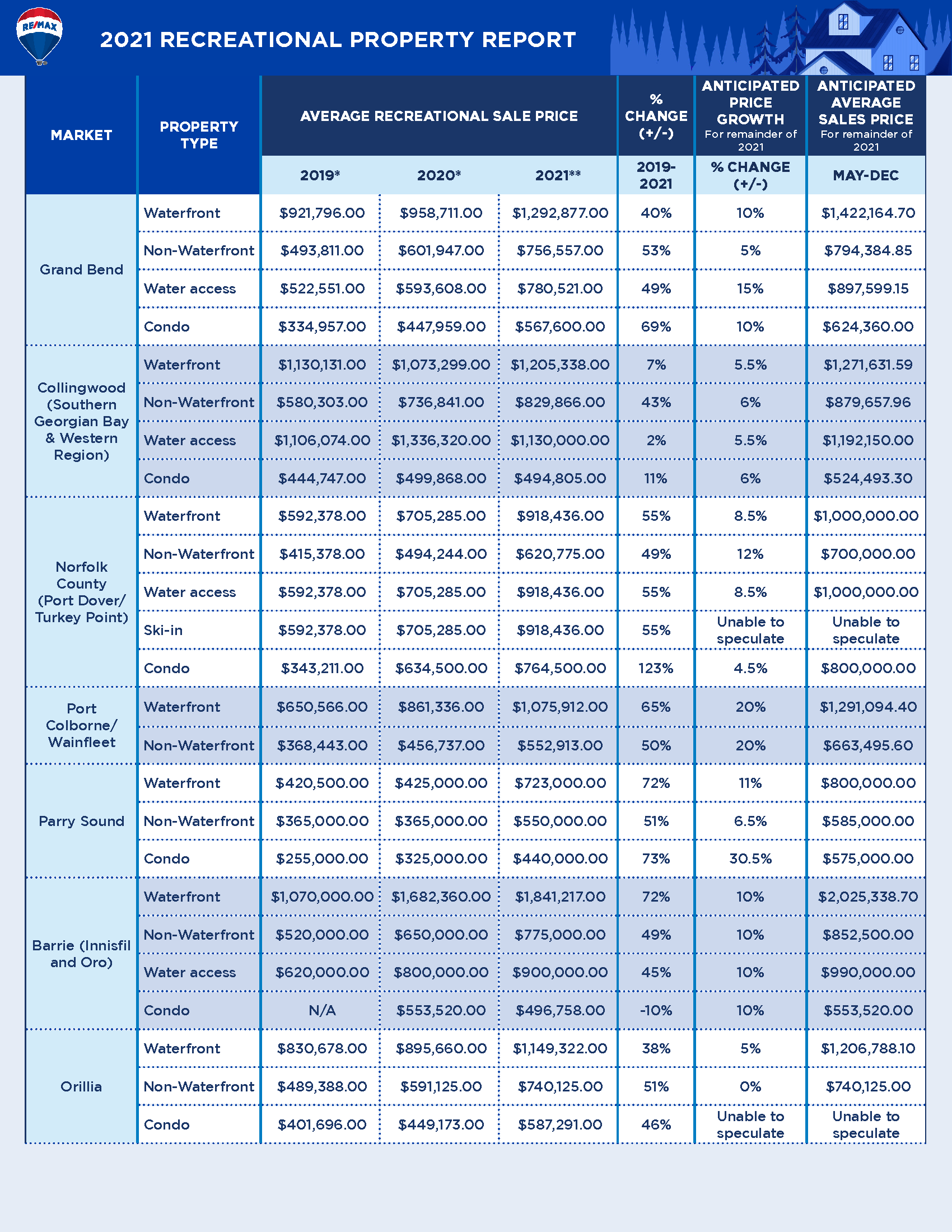 The influx of out-of-town buyers into Ontario’s recreational property markets has impacted local conditions, with some markets seeing an increase in average price in the triple digits between 2019 and April of 2021.