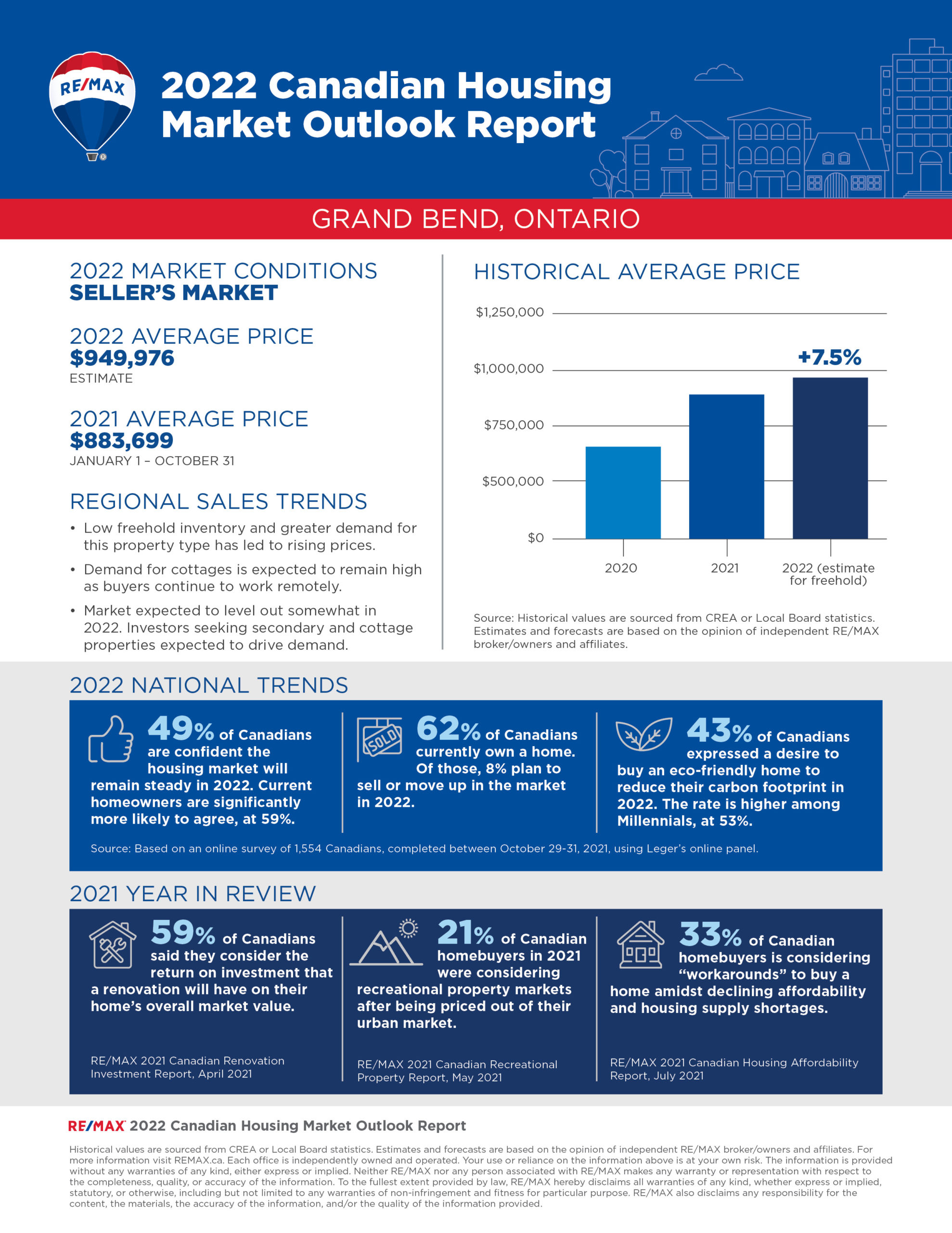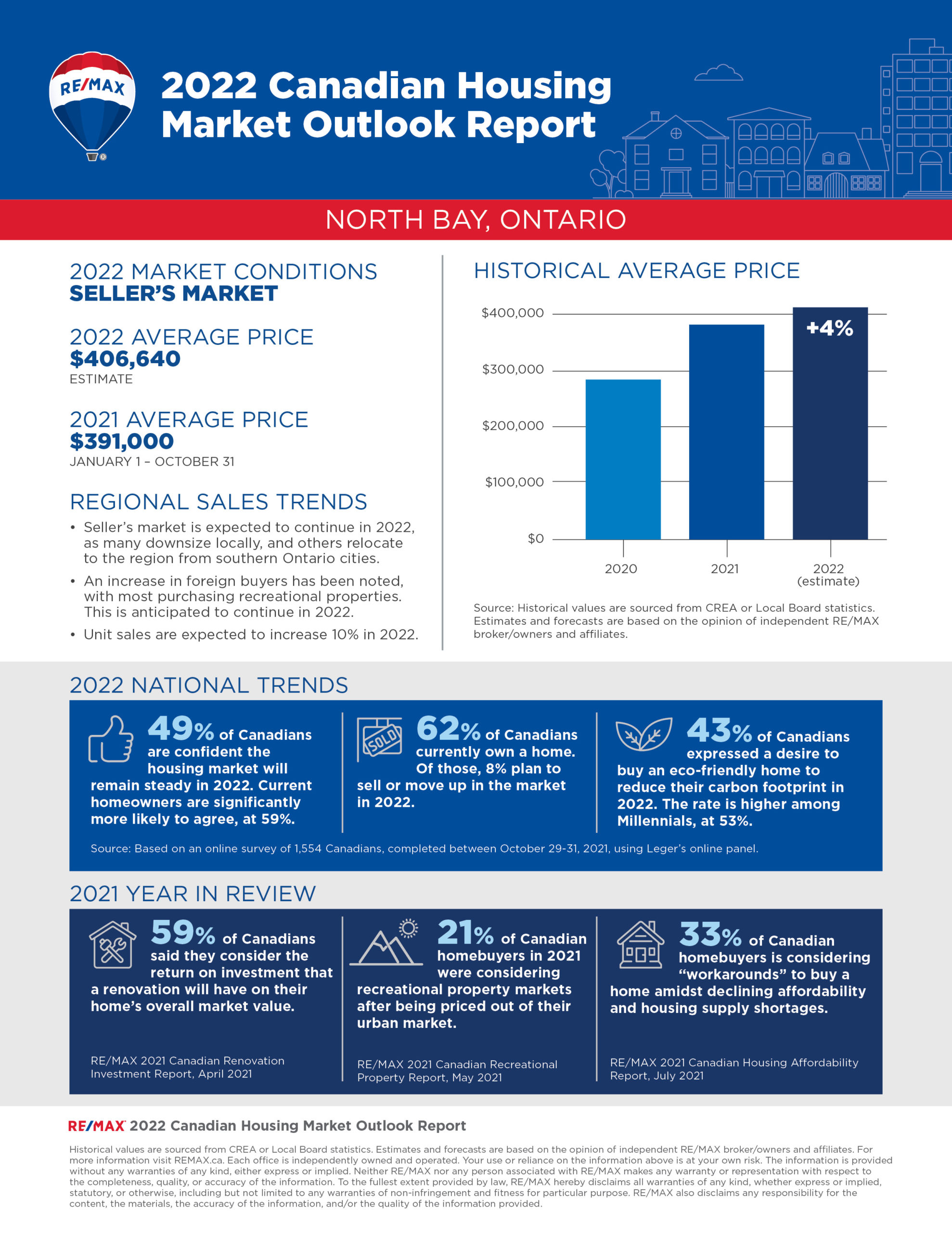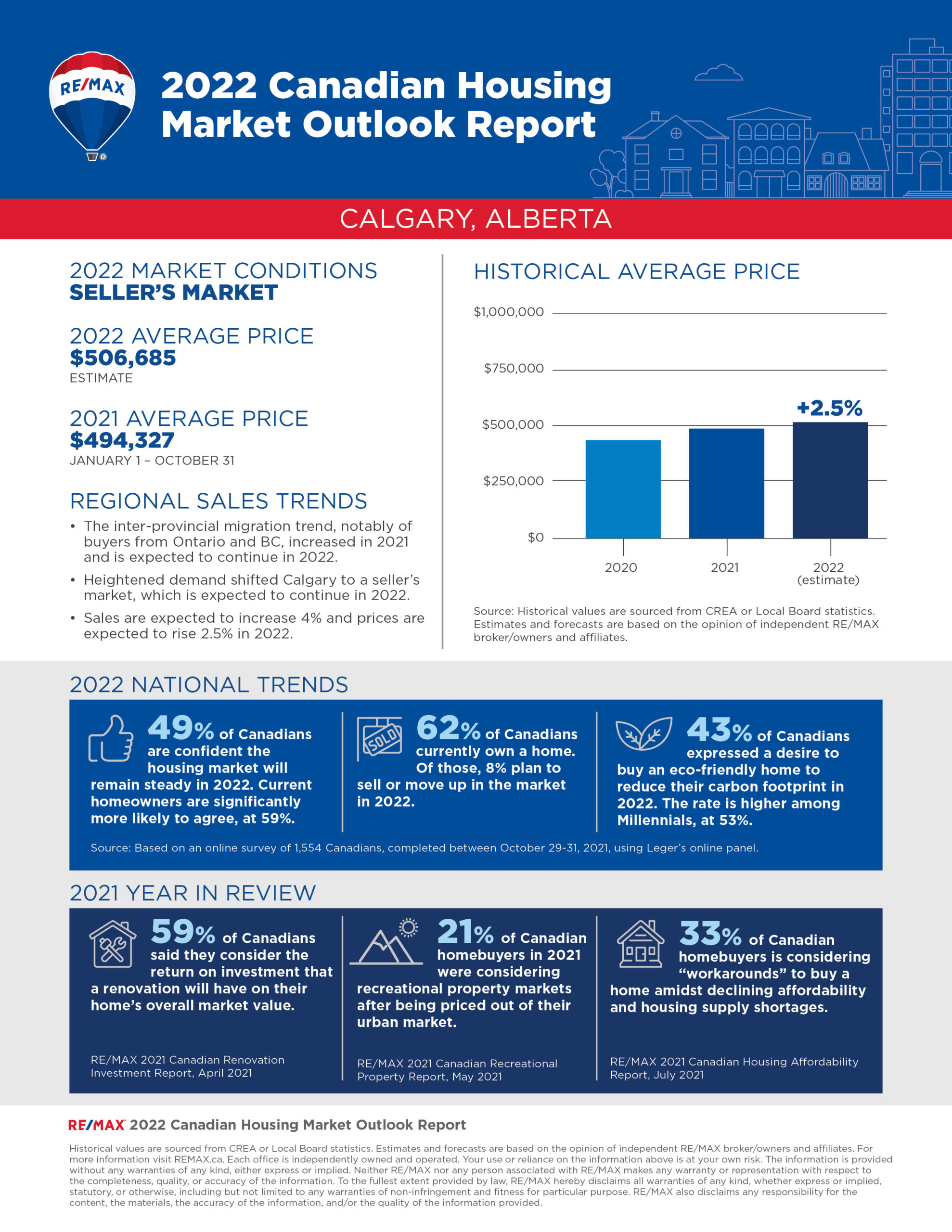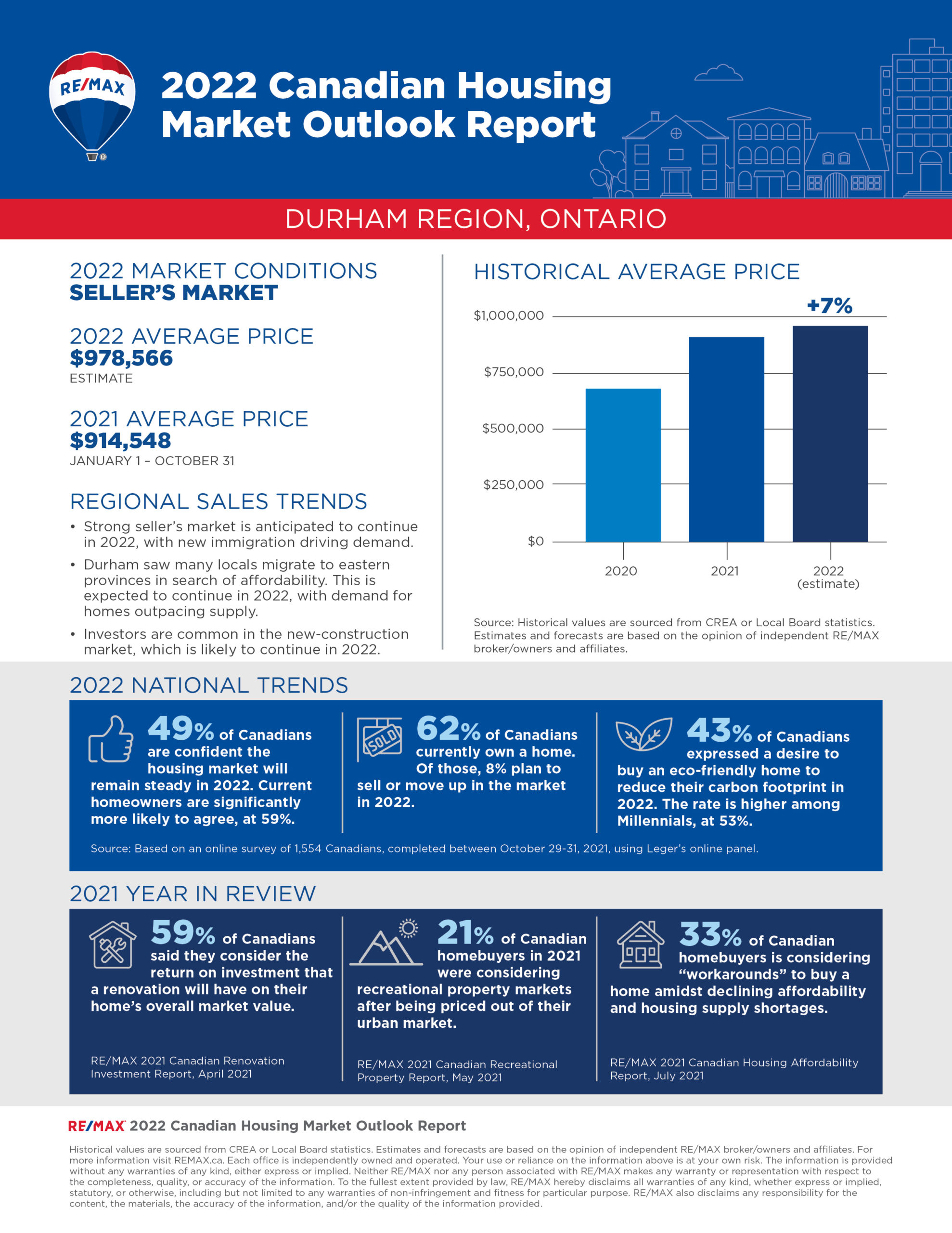 The 2022 RE/MAX Housing Market Outlook Report includes data and insights from RE/MAX brokerages. RE/MAX brokers and agents are surveyed on market activity and local developments. Regional summaries with additional broker insights can be found at REMAX.ca. The overall outlook is based on the average of all regions surveyed, weighted by the number of transaction in each region.
