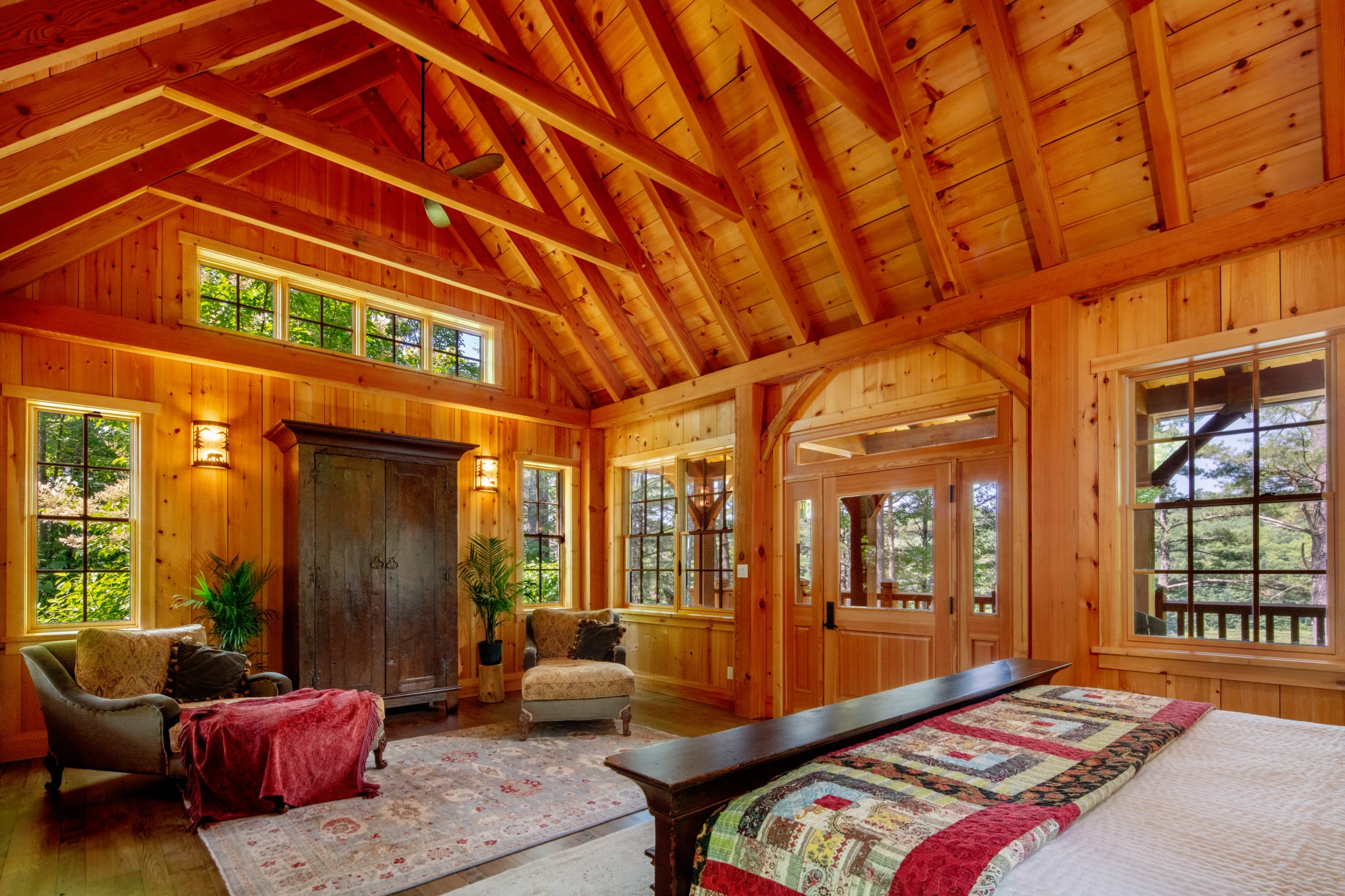 This timber frame home designed and built by Alasdair Russell and Mitchell Master Homes is located on the 17th fairway of Silvertip Golf Course, perfect for any golf enthusiast looking to begin their day doing what they love. With custom finishings including 11 different types of wood sourced from around the globe, the attention to detail in this four-bedroom home is second to none. Enjoy stunning mountain views, in-floor heating on every level and 4,850 square feet of living space in this unique home.