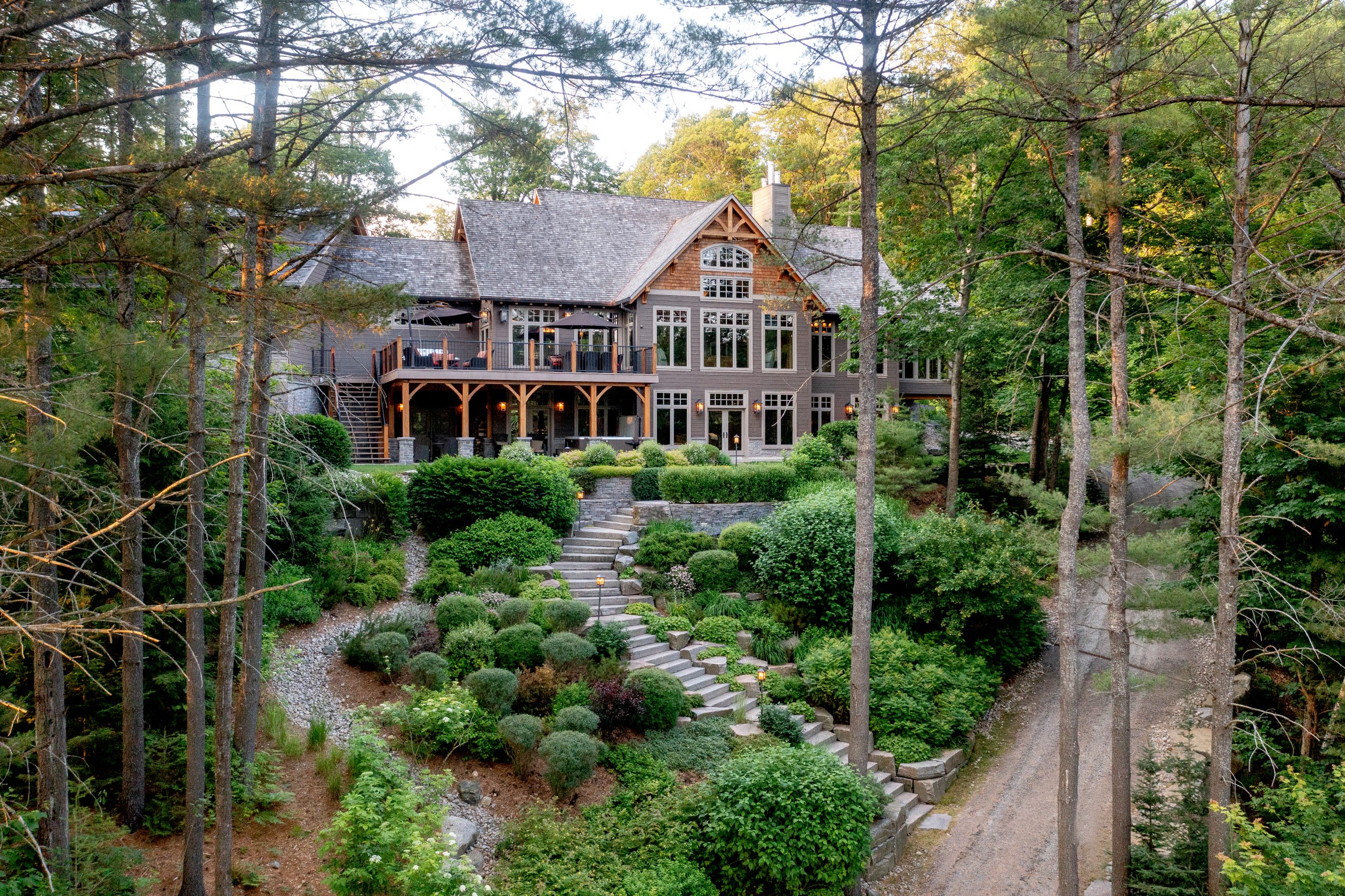 This home is a quiet escape on Kalmaka Lake readily equipped to welcome your family for generations to come. Boasting seven bedrooms and a guest house connected by lichen-covered stairways, this lakefront residence offers a serene setting to unwind and unplug from the outside world.